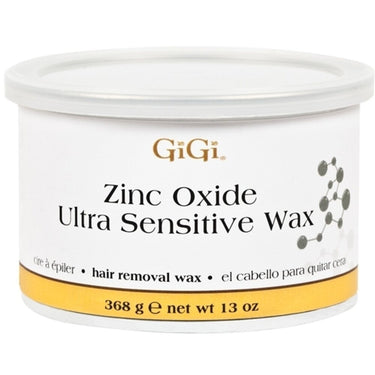 GiGi Zinc Oxide Ultra Sensitive Wax / 13 oz. GiGi Zinc Oxide Ultra Sensitive Wax is formulated with zinc oxide to protect, soothe and heal. GiGi Zinc Oxide Ultra Sensitive Wax is a gentle crme-based hair removal formula designed for clients who are prone to sensitivity. Created with Zinc Oxide, a natural buffer, this wax will protect and eliminate clients discomfort. Zinc Oxide Ultra Sensitive Wax will also help shield and soothe the skin while leaving it feeling soft and silky smooth.