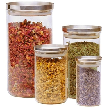 Glass Canister with Stainless Steel Lid - 68oz. This stunning glass canister brings both style and practicality to your treatment space. With its sleek, minimalist design and durable construction, it serves as the ideal storage solution for any spa or salon. Whether you're organizing beauty tools or keeping your Spa Pantry ingredients fresh and safe, this canister provides both functionality and elegance.