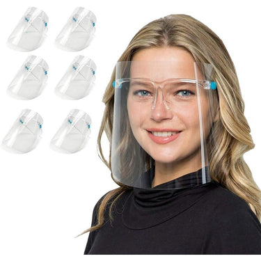 Glasses Style Face Shield Bundle - 6 Reusable Glasses + 12 Replaceable Anti-Fog Shields - Ideal for Men and Women to Protect the Eyes and Face
