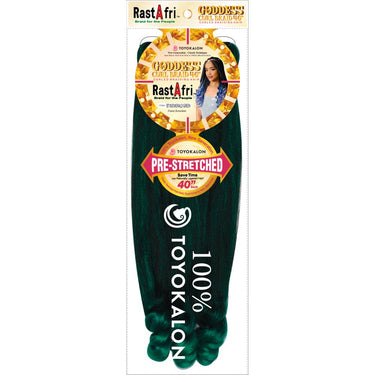 Goddess Curl Braid - Pre-Stretched - Color BT1B/Emerald Green by Rastafri. Step up your braiding game with the Goddess Curl Braid in Color BT1B/Emerald Green by Rastafri. This vibrant braid features a unique blend of natural black and rich emerald green, providing a striking look for clients seeking something bold and beautiful. Crafted from 100% Toyokalon fibers, the hair offers a luxurious softness, flexible texture, and long-lasting wear. With pre-stretched and pre-curled features, this braid not only saves you time but also delivers perfect curls at the ends, giving your braids a stunning, polished finish that will turn heads.