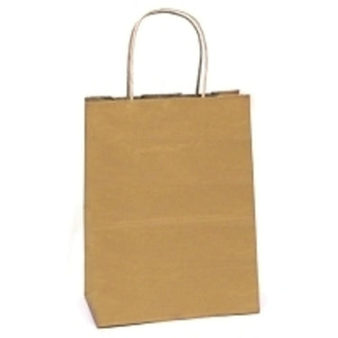 Gold Solid Gift Bag 7.75" x 3.75" x 9.75". Sturdy and very versatile, these solid gift bags have twisted paper handles. Custom imprinting is available. Gold. Sold individually 7.75" x 3.75" x 9.75".