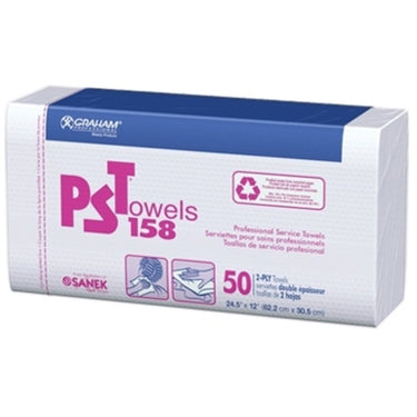 Graham PST Professional Service Towels / Huck Finish / 2 Ply White / 50 per Pack / Case of 10 Packs. PST® Professional Towels are manufactured to be thick, absorbent and strong. Its the perfect all-purpose towel, sized for maximum coverage. Available with either a smooth or an embossed finish.