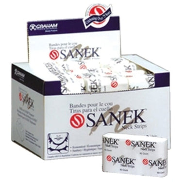 Graham Sanek Neck Strips / 60 Strips per Pack / 12 Packs per Carton / Case of 4 Cartons. Made of a soft, highly absorbent tissue, SANEK® Neck Strips catch loose hair and absorb perspiration and drips. They stretch to comfortably fit around the customer's neck, keeping it clean and protected. SANEK® Neck Strips cost a little over a penny a piece versus paper towels at 5 and a cloth towel at 10.
