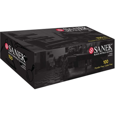 Graham Sanek Powder Free Black Nitrile Gloves - SMALL / 100 Pack. Sanek Nitrile gloves are perfect for Barber and Salon services. Nitrile is superior to vinyl in feel, fit and durability. The "no glove feel" of nitrile gloves allows you to sense changes in water temperature quicker and offers more dexterity with your hands. They are also latex-free to avoid allergic reactions.