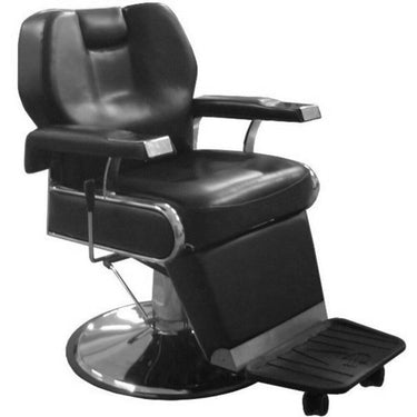 Gunnar Barber Chair / Black Upholstery. This classic barber chair is attractive, professional, spacious, plush, and durable. The reclining barber chair features sturdy construction, a round chrome base, heavy duty round hydraulic pump and base and an adjustable/removable headrest. Customers at any salon or barber shop are always at ease when they have comfortable barber chairs. Your customers spend nearly their entire time in your salon in a barber chair, so you want to make sure they enjoy the experience and want to keep coming back.