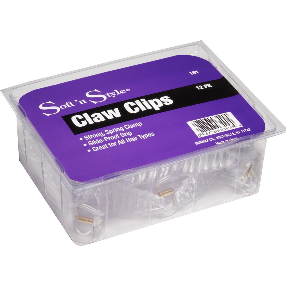 Claw Clips - 12 Pack by Soft 'N Style. Effortlessly create stylish and secure updos with the Claw Clips by Soft 'N Style. Designed to provide quick and easy hair styling for all hair types, these claw clips feature a strong spring clamp that keeps them firmly in place throughout the day. Whether you're working with thick, fine, or curly hair, these clips offer reliable hold without slipping, making them an essential tool for both professional salons and personal use. Their transparent design makes them versatile for any occasion, blending seamlessly into various hairstyles.