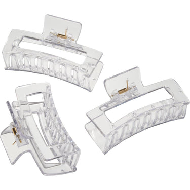 Constructed with a sturdy, spring-loaded mechanism, these claw clips are built to last. The strong clamp ensures they won't lose their grip over time, even with frequent use in a busy salon environment. The clear material is not only stylish but also allows the clips to blend seamlessly into the hair, creating a clean, professional look. The clips measure 3-1/2 inches in length and 1-3/4 inches in width, offering ample coverage for securing even the most challenging hair textures.