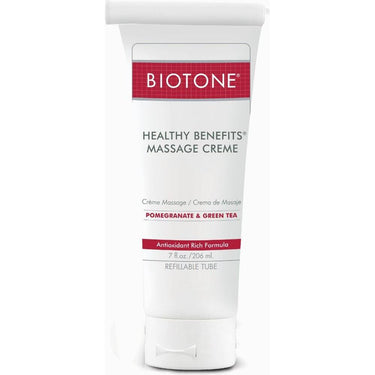 Experience the luxurious and therapeutic benefits of Healthy Benefits® Massage Crème by Biotone. This rich, thick formula is infused with powerful antioxidants from Pomegranate, Green Tea, White Grape, and Grapeseed extracts. These active botanical ingredients are renowned for their ability to protect and restore, delivering vital nutrients to the skin, promoting healthy circulation, and combating free radicals.