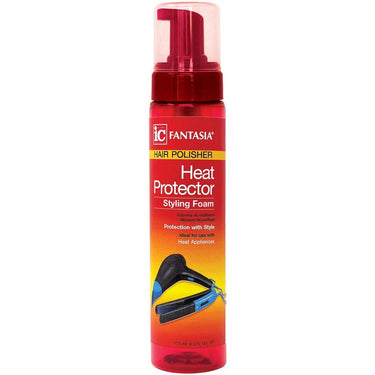 Heat Protector Styling Foam / 8.5 oz. Fantasia Heat Protector Styling Foam is an amazing styling solution! This lightweight, alcohol-free foam is the secret weapon for protecting hair from the damage caused by thermal styling. It creates a protective barrier around each strand, locking in moisture, while adding strength and elasticity. With Fantasia Heat Protector Styling Foam, your clients can enjoy salon-worthy volume, bounce, and shine, without the tacky or heavy feeling. It's perfect for wrapping, roller setting, diffusing, or blow-outs, and it even helps to define curls. The result is healthy-looking, beautiful hair that lasts all day.