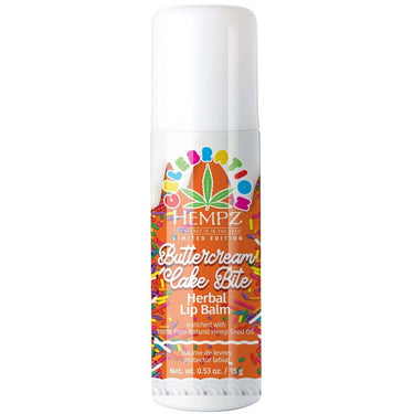 Hempz Limited Edition Buttercream Cake Bite Herbal Lip Balm / 0.53 oz. - 15 grams. Experience Luxurious Care with Hempz Limited Edition Buttercream Cake Bite Herbal Lip Balm. Presenting a delightful way to give your lips the care they deserve Hempz Limited Edition Buttercream Cake Bite Herbal Lip Balm. It's not just about moisturization but also about enjoying a sensory journey with the indulging scent of a Buttercream Cake.