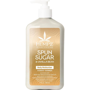 Hempz Spun Sugar & Vanilla Bean Body Moisturizer. Elevate every treatment room and retail shelf with a luxurious touch of sweetness and shimmer. The Hempz Spun Sugar & Vanilla Bean Body Moisturizer doesn't just hydrate — it transforms skin with a decadent scent, a luminous glow, and a botanical powerhouse formula your clients will fall in love with. Perfect for spas and salons aiming to offer a multi-sensory experience, this best-selling lotion from Hempz combines indulgence with professional-grade performance.