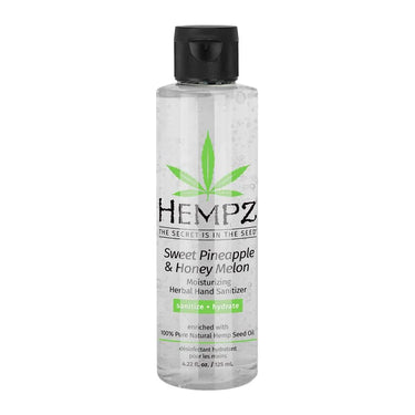 Hempz Sweet Pineapple & Honey Melon Hand Santizer / 2.25 oz. - 66 mL. All-in-one sanitizer and moisturizer. Kills 99.99% of germs leaving hands soft, moisturized, and clean. Essential Extract Blend conditions and hydrates dry, mature skin. Enriched with 100% Pure Natural Hemp Seed Oil.