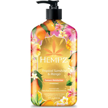 Hydrate, Nourish, and Glow with Every Application. When your clients want more from a moisturizer—something that delivers rich hydration, anti-aging benefits, and even enhances tanning results—this 17 oz. powerhouse bottle delivers. Hempz Tropical Sunshine & Mango Moisturizer combines professional-grade botanical nourishment with functional skincare science, giving beauty professionals a luxurious product that supports multiple needs in both treatment and retail settings.