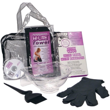 Highlighting Student Kit. Kit includes the following: 1 pair of black nitrile gloves, 250 ct. Hi-Lite wraps (4" x 7"), tint bowl, tint brush, DVD and a vinyl bag.