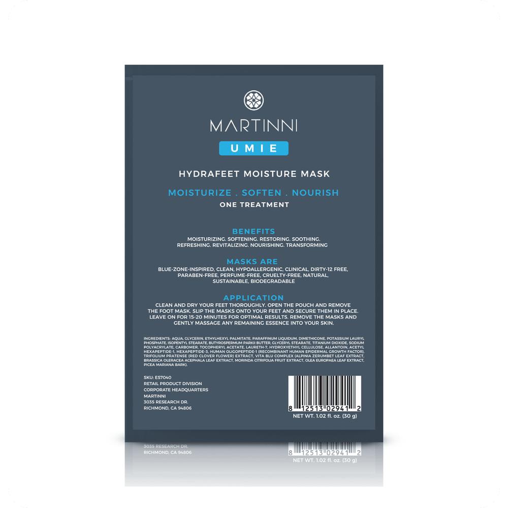 Deliver luxurious foot care with Martinni’s HydraFeet Moisturizing Foot Mask—a deeply hydrating treatment that transforms dry, rough heels into soft, supple skin. Packed with a powerful blend of peptides, antioxidants, and plant-based extracts, this single-use foot mask is designed to repair, restore, and revitalize tired, dehydrated feet. It’s the ideal post-pedicure upgrade or retail add-on for clients who want silky-smooth results at home.