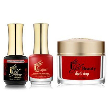 iGel 3-in-1 (GEL + LACQUER + DIP POWDER) - DD112 CHERRY BOMB by iGel. iGel 3-in-1 (GEL + LACQUER + DIP POWDER) - DD112 CHERRY BOMB. iGel Beauty's great 3-in-1 set includes 1 iGel Polish / 0.5 oz. + 1 iLacquer / 0.5 oz. + 1 Dip & Dap Powder / 2 oz. - all in matching colors.