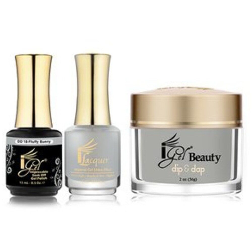 iGel 3-in-1 (GEL + LACQUER + DIP POWDER) - DD18 FLUFFY BUNNY by iGel. iGel 3-in-1 (GEL + LACQUER + DIP POWDER) - DD18 FLUFFY BUNNY. iGel Beauty's great 3-in-1 set includes 1 iGel Polish / 0.5 oz. + 1 iLacquer / 0.5 oz. + 1 Dip & Dap Powder / 2 oz. - all in matching colors.