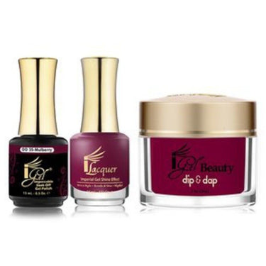 iGel 3-in-1 (GEL + LACQUER + DIP POWDER) - DD35 MULBERRY by iGel. iGel 3-in-1 (GEL + LACQUER + DIP POWDER) - DD35 MULBERRY. iGel Beauty's great 3-in-1 set includes 1 iGel Polish / 0.5 oz. + 1 iLacquer / 0.5 oz. + 1 Dip & Dap Powder / 2 oz. - all in matching colors.