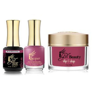 iGel 3-in-1 (GEL + LACQUER + DIP POWDER) - DD50 MELANCHOLY by iGel. iGel 3-in-1 (GEL + LACQUER + DIP POWDER) - DD50 MELANCHOLY. iGel Beauty's great 3-in-1 set includes 1 iGel Polish / 0.5 oz. + 1 iLacquer / 0.5 oz. + 1 Dip & Dap Powder / 2 oz. - all in matching colors.