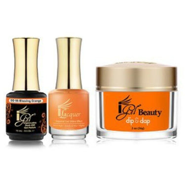 iGel 3-in-1 (GEL + LACQUER + DIP POWDER) - DD66 BLAZZING ORANGE by iGel. iGel 3-in-1 (GEL + LACQUER + DIP POWDER) - DD66 BLAZZING ORANGE. iGel Beauty's great 3-in-1 set includes 1 iGel Polish / 0.5 oz. + 1 iLacquer / 0.5 oz. + 1 Dip & Dap Powder / 2 oz. - all in matching colors.