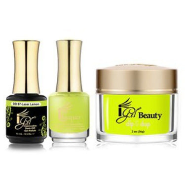 iGel 3-in-1 (GEL + LACQUER + DIP POWDER) - DD67 LASER LEMON by iGel. iGel 3-in-1 (GEL + LACQUER + DIP POWDER) - DD67 LASER LEMON. iGel Beauty's great 3-in-1 set includes 1 iGel Polish / 0.5 oz. + 1 iLacquer / 0.5 oz. + 1 Dip & Dap Powder / 2 oz. - all in matching colors.