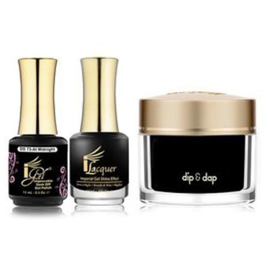 iGel 3-in-1 (GEL + LACQUER + DIP POWDER) - DD73 AT MIDNIGHT by iGel. iGel 3-in-1 (GEL + LACQUER + DIP POWDER) - DD73 AT MIDNIGHT. iGel Beauty's great 3-in-1 set includes 1 iGel Polish / 0.5 oz. + 1 iLacquer / 0.5 oz. + 1 Dip & Dap Powder / 2 oz. - all in matching colors.