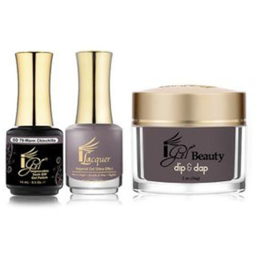 iGel 3-in-1 (GEL + LACQUER + DIP POWDER) - DD79 WARM CHINCHILLA by iGel. iGel 3-in-1 (GEL + LACQUER + DIP POWDER) - DD79 WARM CHINCHILLA. iGel Beauty's great 3-in-1 set includes 1 iGel Polish / 0.5 oz. + 1 iLacquer / 0.5 oz. + 1 Dip & Dap Powder / 2 oz. - all in matching colors.