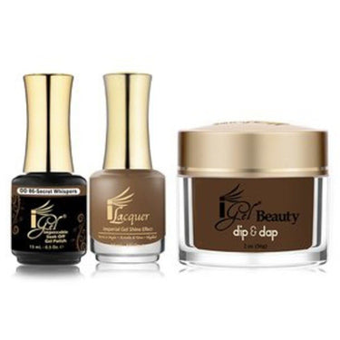 iGel 3-in-1 (GEL + LACQUER + DIP POWDER) - DD86 SECRET WHISPERS by iGel. iGel 3-in-1 (GEL + LACQUER + DIP POWDER) - DD86 SECRET WHISPERS. iGel Beauty's great 3-in-1 set includes 1 iGel Polish / 0.5 oz. + 1 iLacquer / 0.5 oz. + 1 Dip & Dap Powder / 2 oz. - all in matching colors.