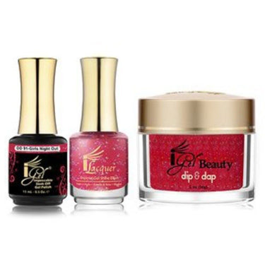 iGel 3-in-1 (GEL + LACQUER + DIP POWDER) - DD91 GRILS NIGHT OUT by iGel. iGel 3-in-1 (GEL + LACQUER + DIP POWDER) - DD91 GRILS NIGHT OUT. iGel Beauty's great 3-in-1 set includes 1 iGel Polish / 0.5 oz. + 1 iLacquer / 0.5 oz. + 1 Dip & Dap Powder / 2 oz. - all in matching colors.