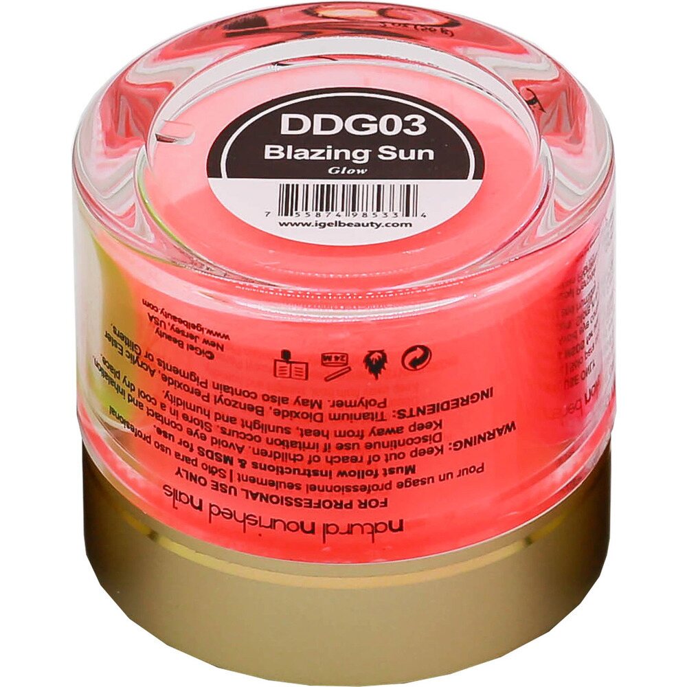 iGel Dip & Dap Powder - Glow in the Dark - DDG03 Blazing Sun / 2 oz. by iGel. Dip & Dap Powder is a healthier, safer and more time efficient alternative to an acrylic monomer system. It is infused with calcium, vitamins and adds shine to the nails without damaging the nail beds. The dip system produces a natural feel, being stronger than gel application but lighter than acrylic. It is odor and MMA free and also doesn't require the use of an UV/LED lamp. The Dip & Dap is the next best thing for the nail industry.