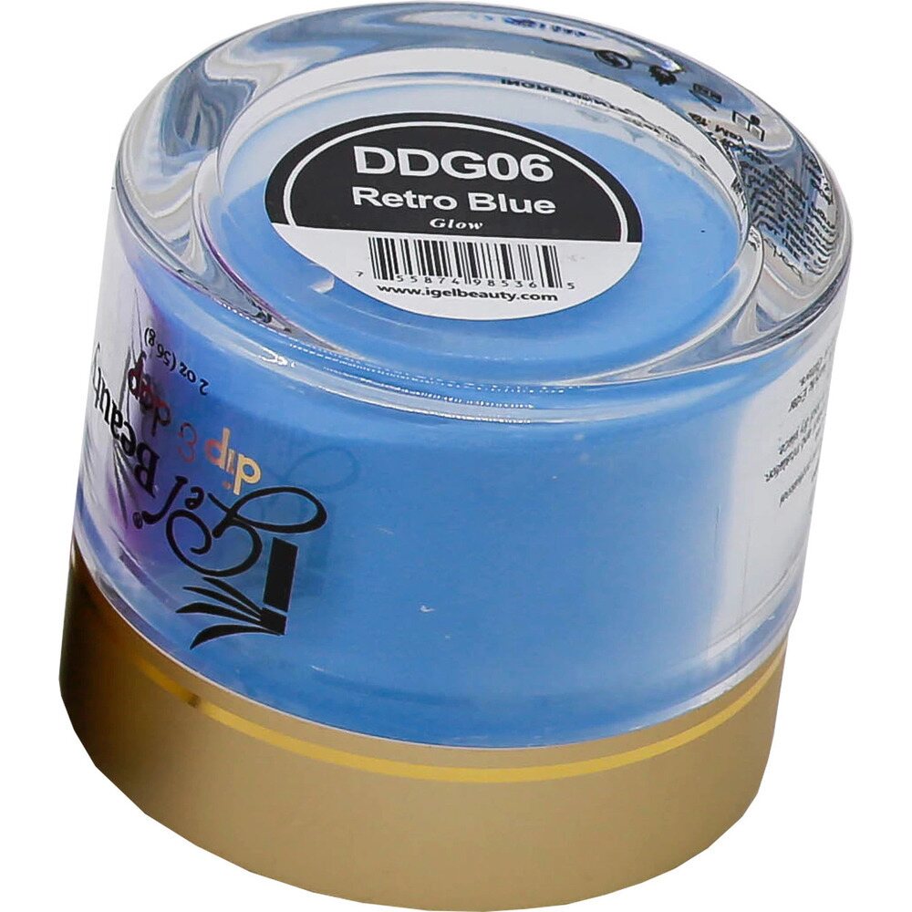 iGel Dip & Dap Powder - Glow in the Dark - DDG06 Retro Blue / 2 oz. by iGel. Dip & Dap Powder is a healthier, safer and more time efficient alternative to an acrylic monomer system. It is infused with calcium, vitamins and adds shine to the nails without damaging the nail beds. The dip system produces a natural feel, being stronger than gel application but lighter than acrylic. It is odor and MMA free and also doesn't require the use of an UV/LED lamp. The Dip & Dap is the next best thing for the nail industry.