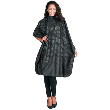 Incredi-Cape / 45" x 60" / Black. 45" x 60". Bleach and chemical proof. Lightweight polyester with and embossed print design and snap closure.