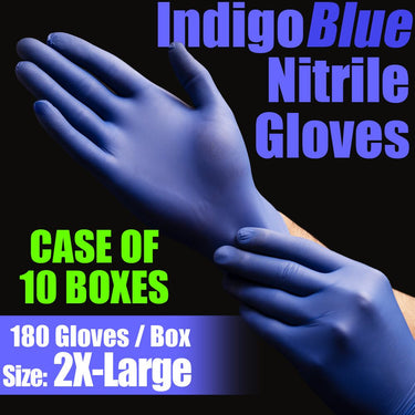 IndigoBlue Nitrile Exam Gloves / Powder-Free Non-Sterile Nitrile Examination Gloves / Size 2X-Large / 180 per Box X 10 Boxes = Case of 1,800 Gloves by IndigoBlue. IndigoBlue Nitrile Exam Gloves are now our best-selling glove. They provide tactile sensitivity and protect hands from potentially infectious materials. They offer a soft and comfortable feel you'll love. Latex Free. Powder Free. 1 Case of XX-Large Gloves = 10 Boxes of 180 Gloves = 1,800 Gloves.