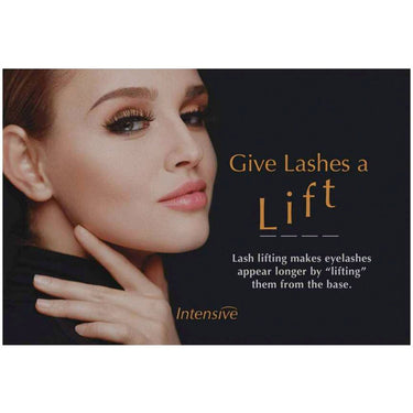 Intensive Eyelash Lift - Window Cling / 4" x 6". Transform your spa or salon atmosphere and highlight the luxury of your eyelash services with the Intensive Eyelash Lift Window Cling. This eye-catching cling is designed to elevate your space, drawing attention to your professional services and products. Whether you're displaying it on a mirror or a window, it serves as a perfect reminder for your clients about the benefits of lash lifting.
