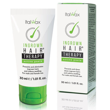 ItalWax Ingrown Hairs THERAPY - Active Paste | Prevents and Eliminates Ingrown Hairs and Reduces Swelling / 1.01 oz. - 30 mL. ItalWax Ingrown Hairs Therapy Active Paste prevents and eliminates ingrown hairs and bumps on the the face, bikini line, legs and underarms. Scientifically formulated with Tea Tree Oil, Triclosan and Vitamin A, Active Paste reduces redness and swelling for smooth, healthy looking skin after hair removal. Prevents and eliminates ingrown hairs and reduce swelling. For male and female use. MADE IN ITALY.