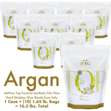 ItalWax Top Formula Synthetic Film Wax - Argan - Hard Stripless Wax Beads from Italy / 1 Case = (10) 1.65 lb. Bags = 16.5 lbs. Total