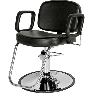 - Square, cushioned arms support hands and forearms without restricting stylist movement around the crown and nape.