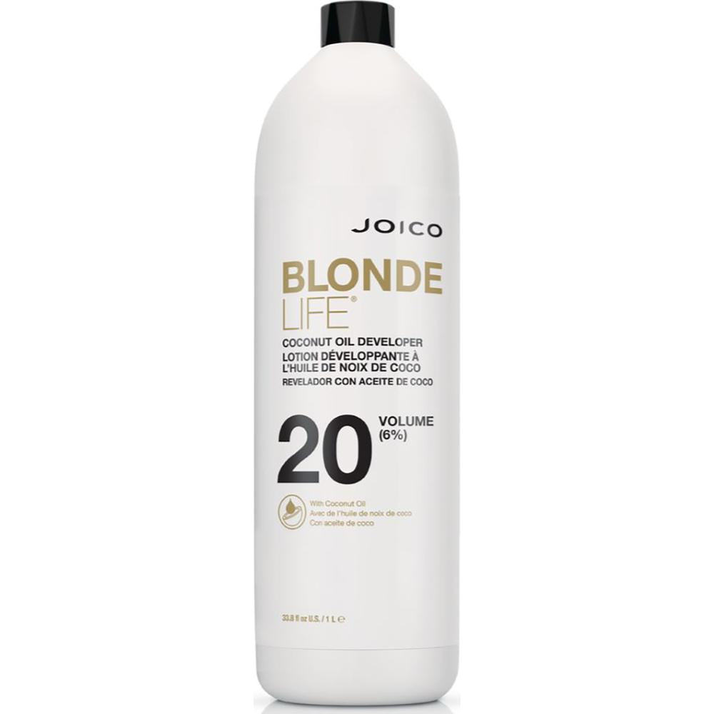 Joico Blonde Life 20 Volume Developer: Professional Performance with Luxurious Hydration. Empower every blonding session with a developer that delivers reliable lift, nourishment, and a silky-smooth finish. The Joico Blonde Life 20 Volume Developer is more than just a processing agent—it's a professional-grade partner formulated to protect, condition, and elevate your color services. Crafted with coconut oil and luxurious oils like tamanu and monoi, this developer transforms the lifting process into a care-infused ritual, delivering the results your clients expect and the softness they’ll rave about.