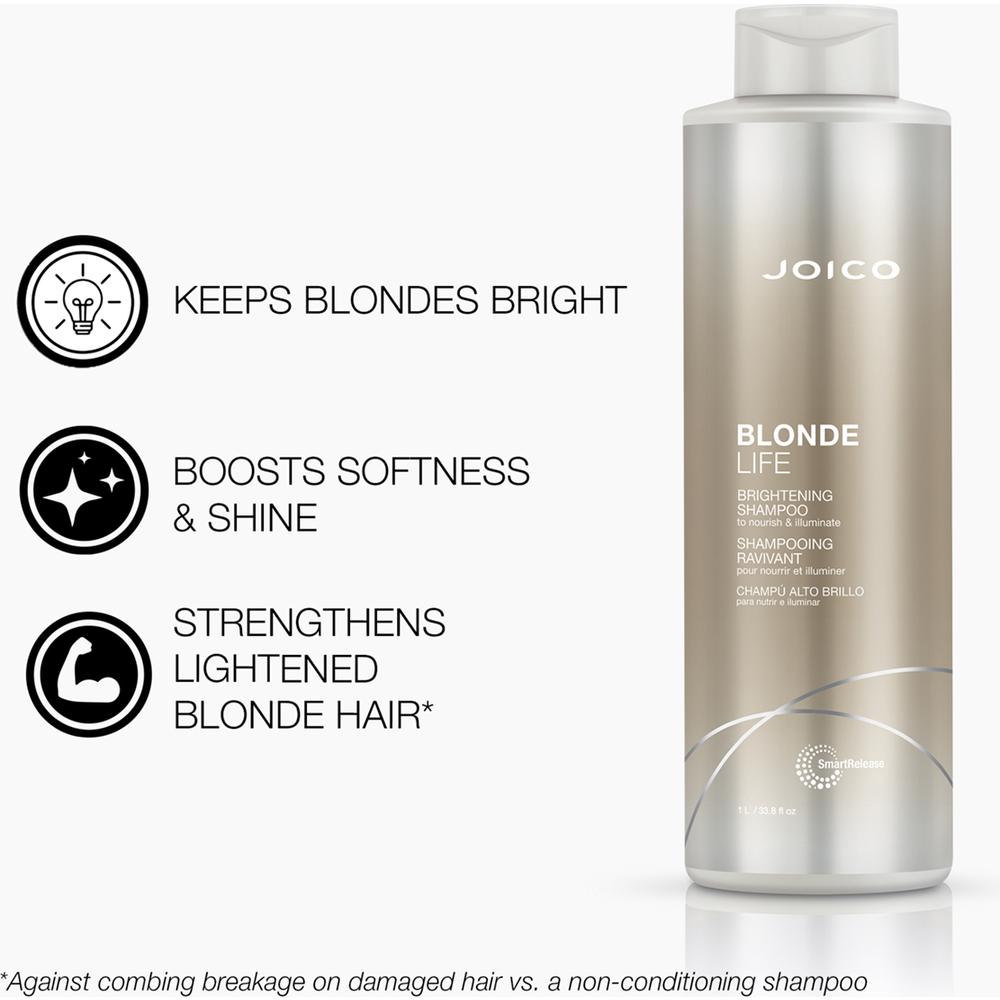 Joico Blonde Life Brightening Shampoo Liter. Experience a transformative cleansing ritual that revives dull, overprocessed blonde hair into radiant, shimmering brilliance. Joico Blonde Life Brightening Shampoo delivers more than just a deep clean—it infuses each strand with the nourishment, strength, and glow that blondes crave, making it the perfect ally for beauty professionals who demand high-performance results.