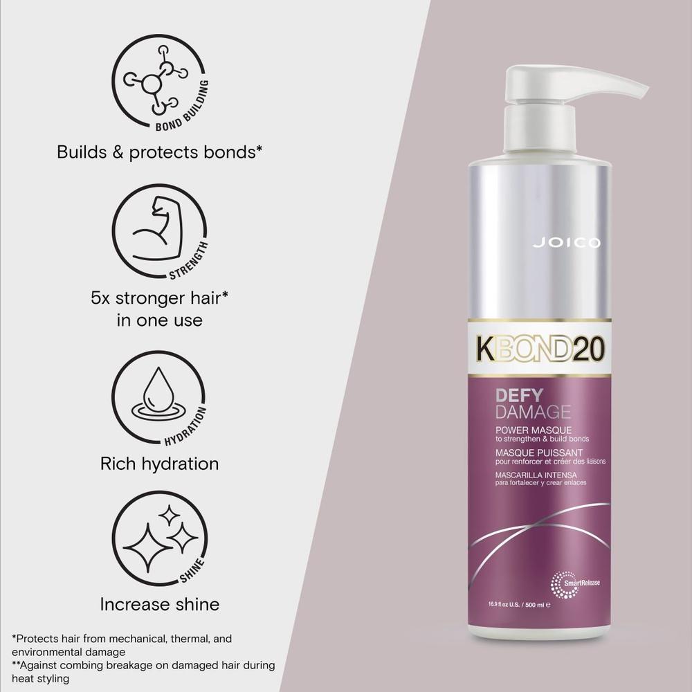 The Joico Defy Damage KBOND20 Power Masque belongs in every salon that takes hair health seriously. From high-end color studios to fast-paced blowout bars, it provides versatile, reliable repair that enhances your results and showcases your technical artistry. Offer it as a standalone intensive service or include it as a value-added treatment with color, highlights, or chemical smoothing.