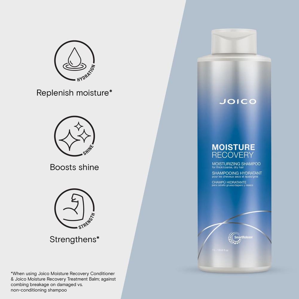 Joico Moisture Recovery Shampoo for Thick, Dry Hair. For salon professionals and spa specialists who understand the complexity of dry, coarse, and overworked hair, Joico Moisture Recovery Shampoo offers a revitalizing experience your clients will immediately feel. This is more than just a shampoo—it’s a deeply hydrating ritual designed to replenish, renew, and restore the health of hair that thirsts for moisture. When you're treating stressed strands at the backbar, this liter-sized powerhouse delivers softness, elasticity, and manageability with every wash.