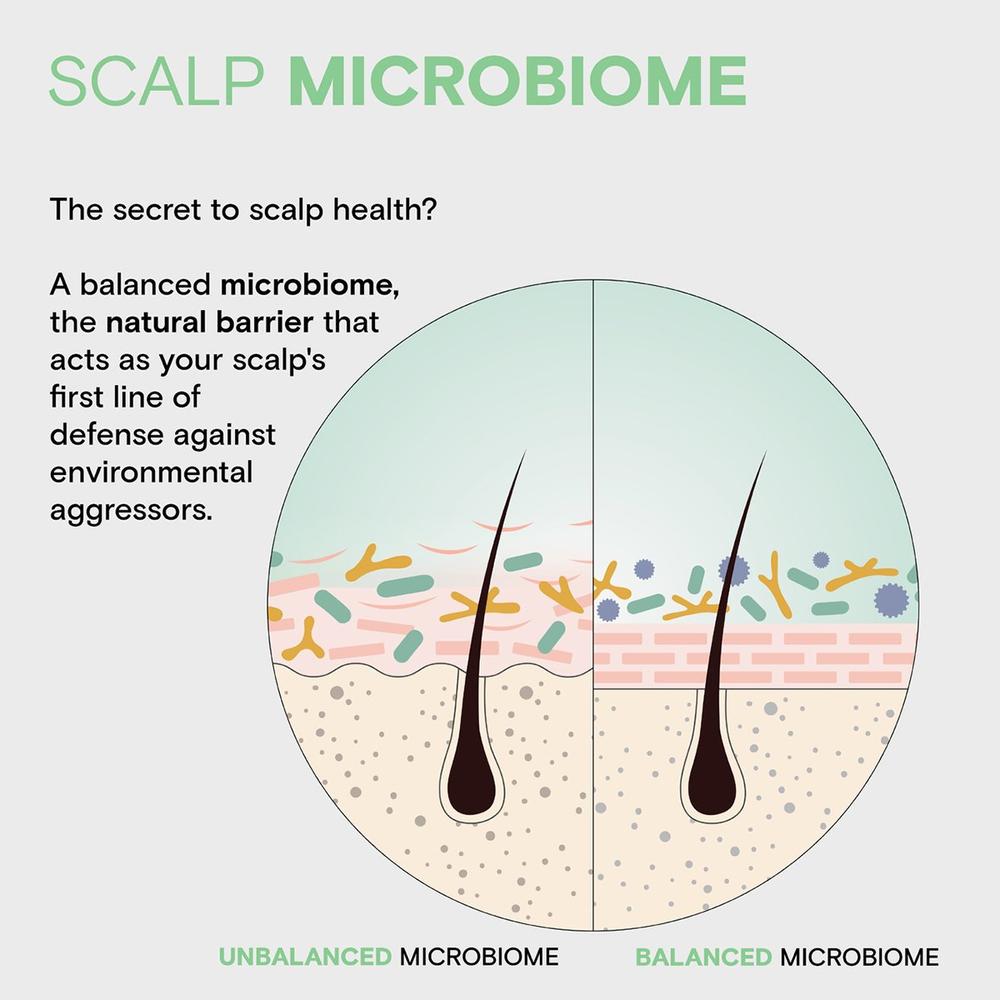 - Supports a balanced scalp microbiome — the natural barrier that protects against environmental aggressors like pollutants and irritants
