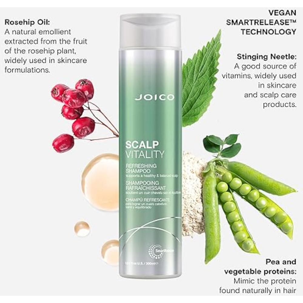 Joico Scalp Vitality Refreshing Shampoo 10.1 oz. Refresh and rebalance the scalp with every cleanse. For salons and spa professionals seeking a shampoo that doesn’t just cleanse but actively supports scalp health, Joico’s Scalp Vitality Refreshing Shampoo offers a luxurious, clinical-grade experience your clients will feel from root to tip. It delivers immediate freshness and long-term scalp harmony, making it a top-tier addition to both professional backbar and retail shelves.