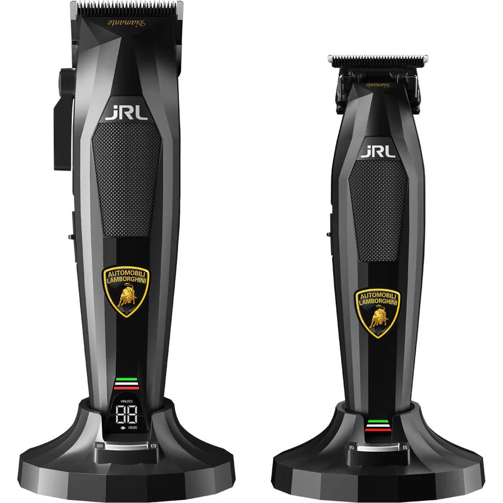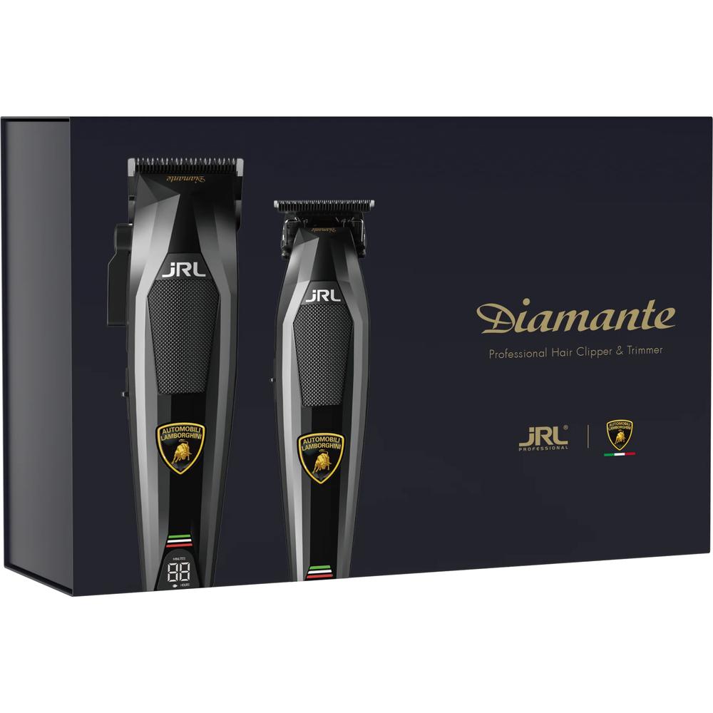 JRL x Lamborghini Diamante Professional Clipper + Trimmer Set. Power, precision, and prestige combine in one elite duo built for the working pro. This collaboration between JRL and Automobili Lamborghini elevates your cutting workflow from bulk removal to micro-detailing with relentless torque, cooler-running blades, and premium ergonomics that stay comfortable through a full book. The Diamante clipper and trimmer deliver the speed you want, the control you need, and the design your station deserves.