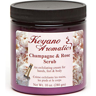 Keyano Champagne & Rose Scrub / 10 oz. An oil free exfoliating treatment for hands, feet & body. Great for use in manicure, pedicure and body exfoliating treatments. Compatible with whirlpool pedicure units. Available in 10 oz. and 80 oz.