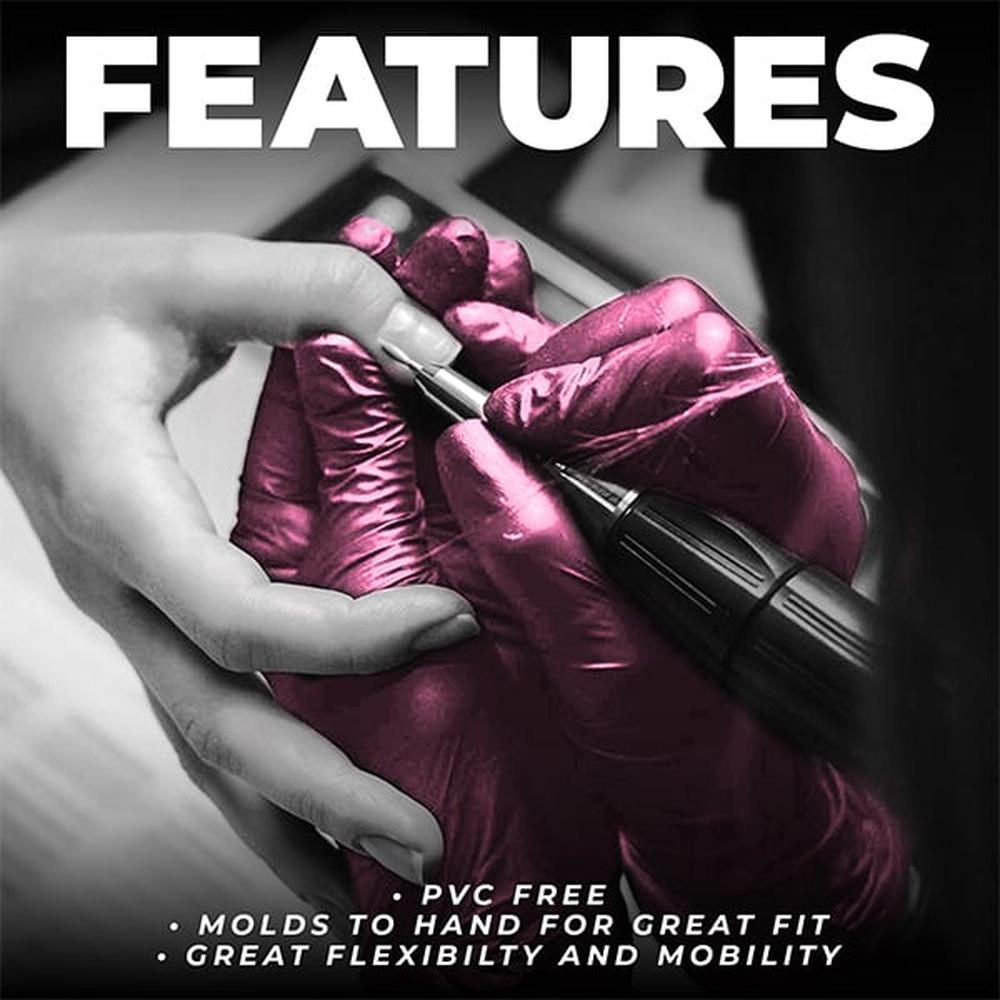 Our colored nitrile gloves are highly resistant to punctures, chemicals, and germs, making them ideal for any job requiring safety and hygiene. Their latex-free, powder-free, and PVC-free composition is perfect for people with allergies. These gloves provide a snug yet comfortable fit, allowing unrestricted movement and precision. Suitable for hair, beauty, tattooing, healthcare, cleaning, and food prep tasks, these gloves have become a must-have for professionals and home users alike.