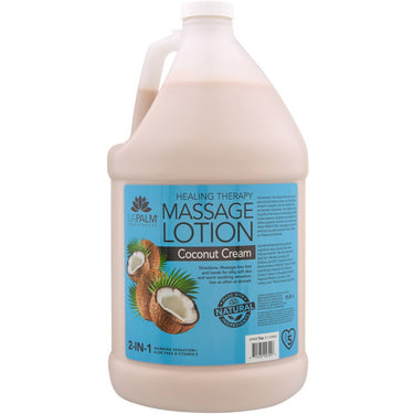 La Palm Healing Therapy Massage Lotion for Hands & Feet - Heals and Rejuvenates Dry Skin - COCONUT CREAM - STEP 5 / 1 Gallon - 3.79 Liters. Advanced Protein For Healing Skin - Made from an advanced and concentrated protein formula, La Palm Massage Lotion heals and replenish dry skin better than your typical spa lotions.