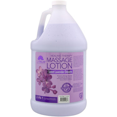 La Palm Healing Therapy Massage Lotion for Hands & Feet - Heals and Rejuvenates Dry Skin - SWEET LAVENDER DREAMS - STEP 5 / 1 Gallon - 3.79 Liters. Looking for a great lotion for your massages, manicures or pedicures? Try this La Palm Lavender Lotion to offer the healing properties your clients need!
