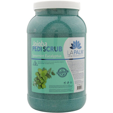 La Palm Jojoba Pedi Foot Scrub - Foot Exfoliator - SPEARMENT EUCALYPTUS - STEP 2 / 1 Gallon - 3.79 Liters. This La Palm Pedicure Foot Scrub is fabulous for conditioning the skin and rendering it supple and smooth. Get some today so you can offer it to your clients!
