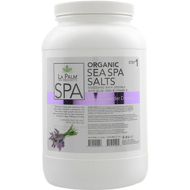 La Palm Organic Sea Spa Salts for Pedicures - Dissolving Bath Crystals with Aloe Vera & Vitamin E - SWEET LAVENDAR DREAMS - STEP 1 / 1 Gallon - 3.79 Liters. It's easier to give your clients a luxurious foot bath with this La Palm Spa Pedicure Salts. An ultimate foot soak treatment, these bath crystals works wonderfully to revitalize the skin!